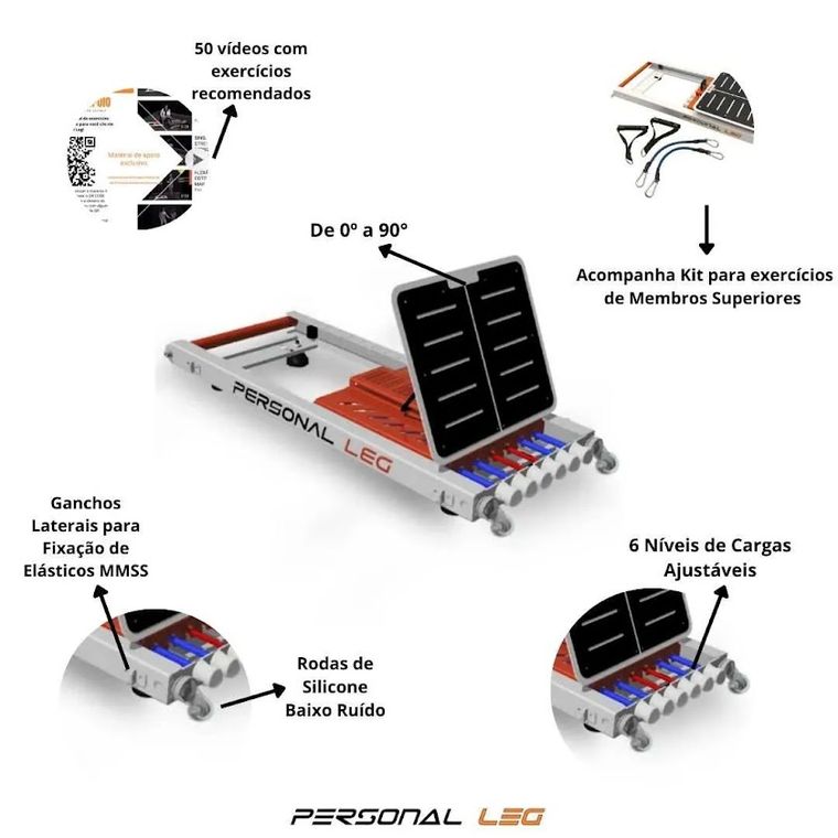 O equipamento é indicado para reabilitações e treinos, visando facilidade, bem-estar e saúde. O Personal Leg é uma estação de treinos, recomendado para pessoas que querem estender o treino realizado nas academias ou treinar no conforto de sua casa, de fácil transporte e manuseio, ideal para a busca de condicionamento e ganho muscular, além de ser um equipamento muito utilizado no âmbito fisioterapêutico auxiliando profissionais e pacientes com diversos exercícios para vários tipos de reabilitação, presente em diversas clínicas e hospitais agregando valor ao trabalho do fisioterapeuta, proporcionando significativa evolução dos pacientes.
